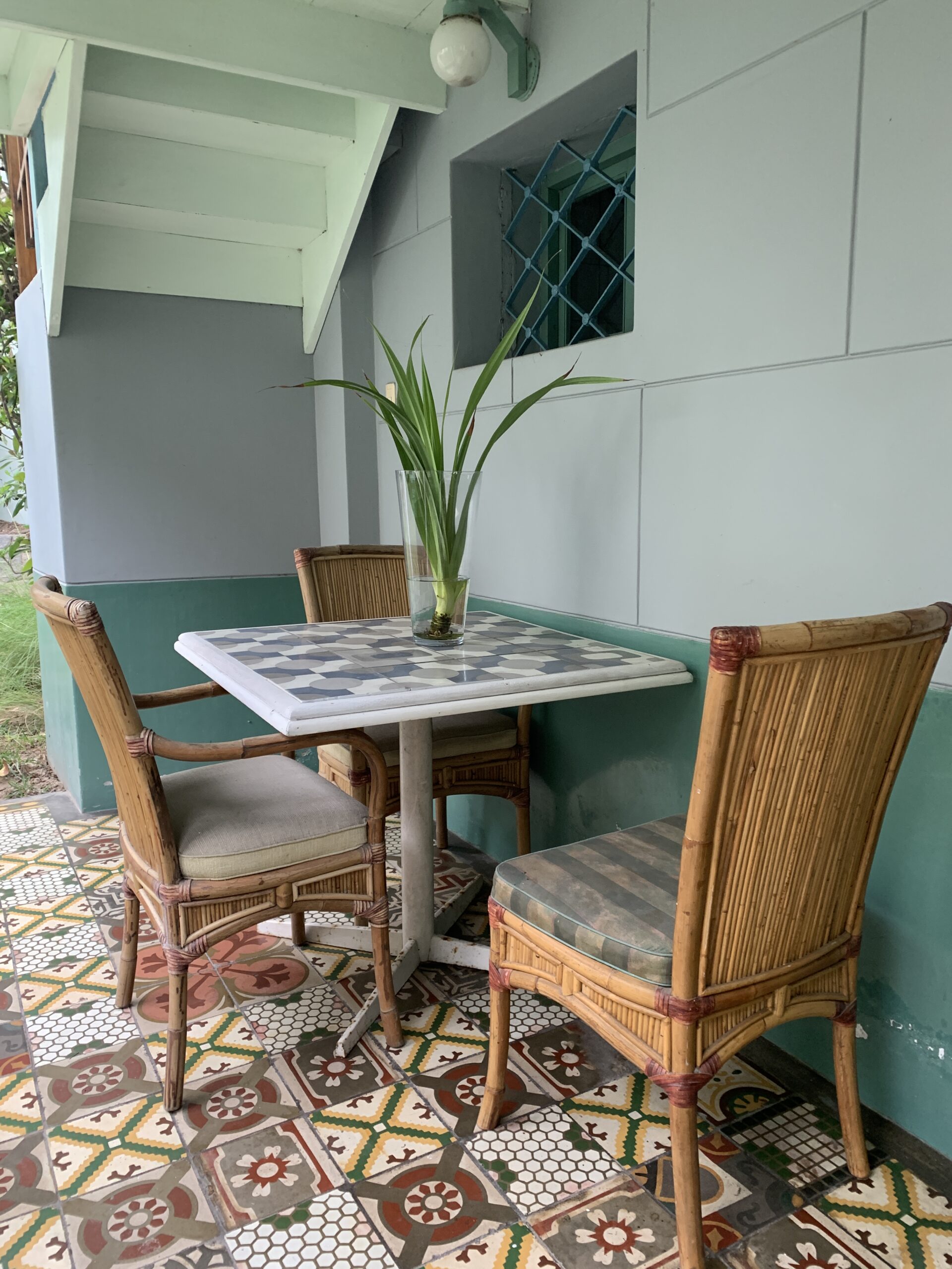 Our popular apartment #4 is located on the ground floor of the Monumental Mansion. It is a cozy and very complete mini-apartment with a nice terrace in the gardens surrounded by trees, flowers and (humming) birds.